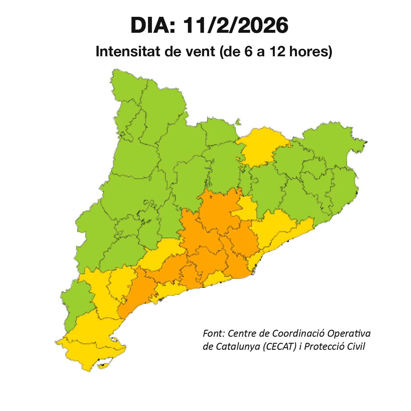 Avís de ventades a partir del dimecres 11 de febrer