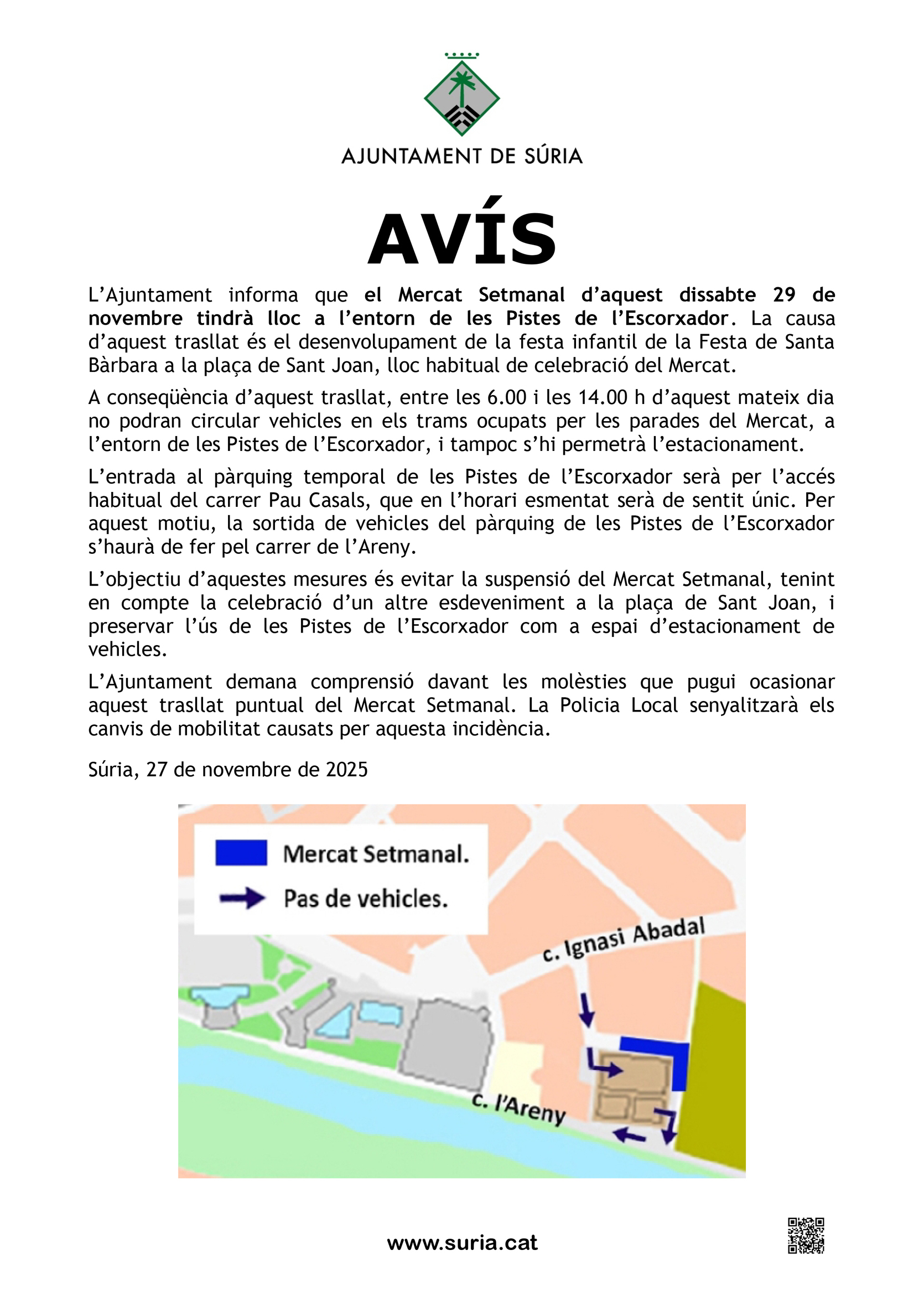 Enllaç per descarregar l'avís sobre el Mercat Setmanal: Enllaç.