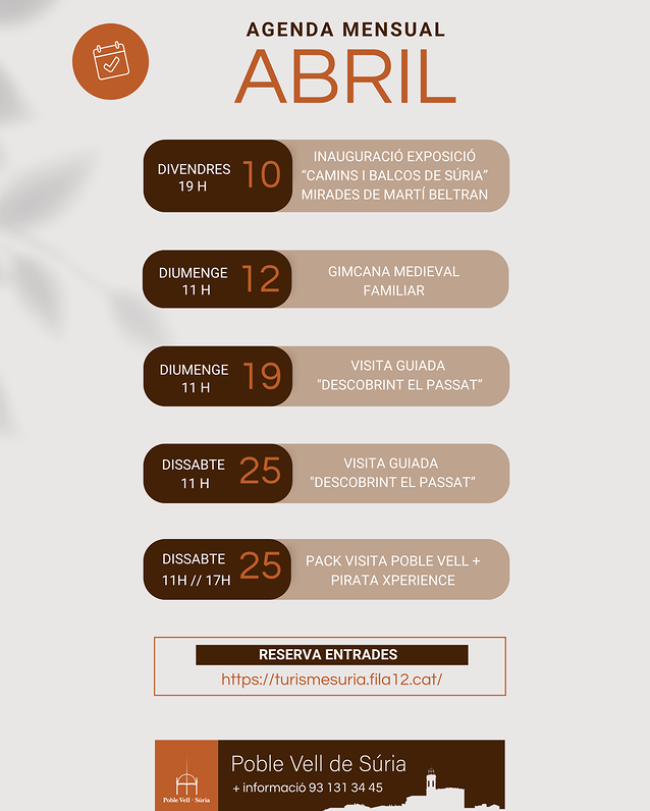 Calendari d’activitats de l’Oficina de Turisme: www.suria.cat/agenda-turisme.