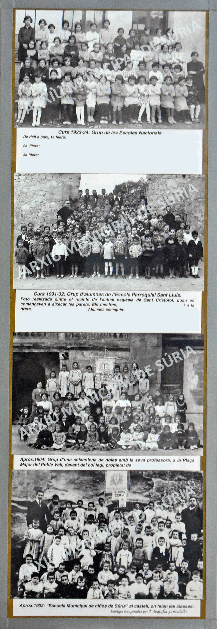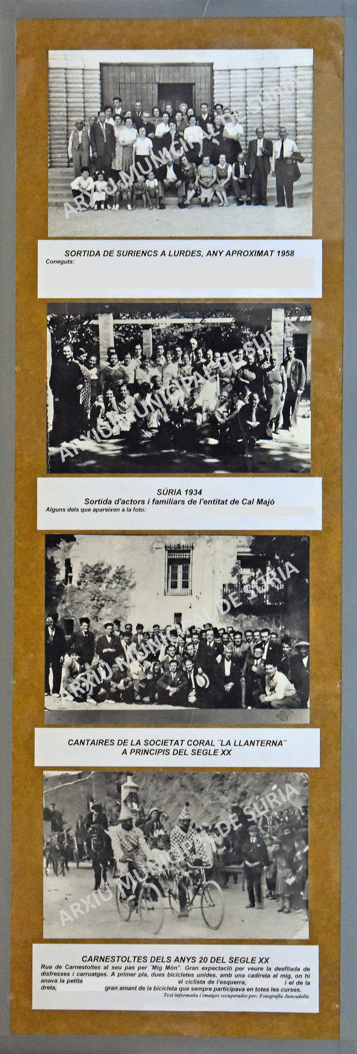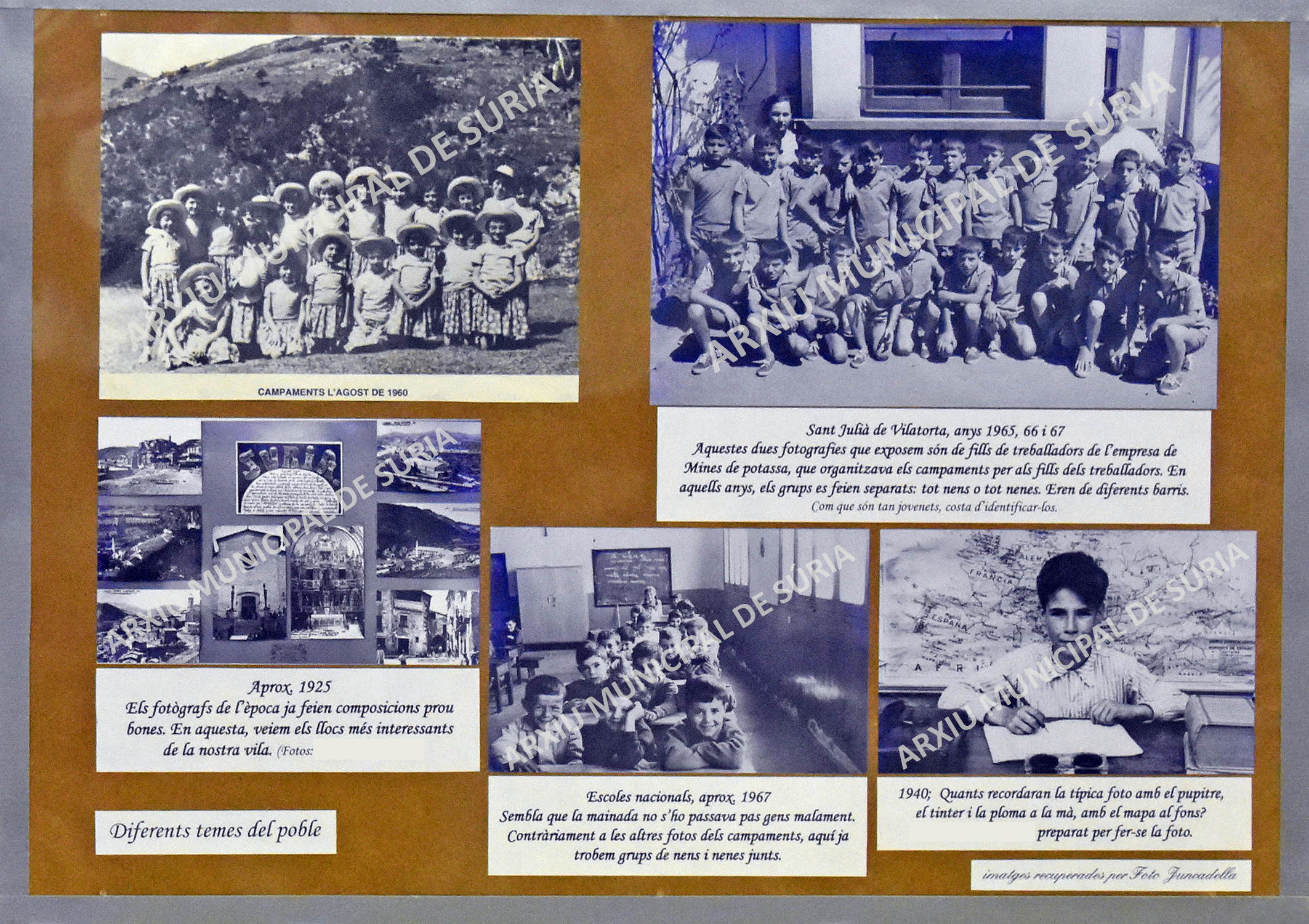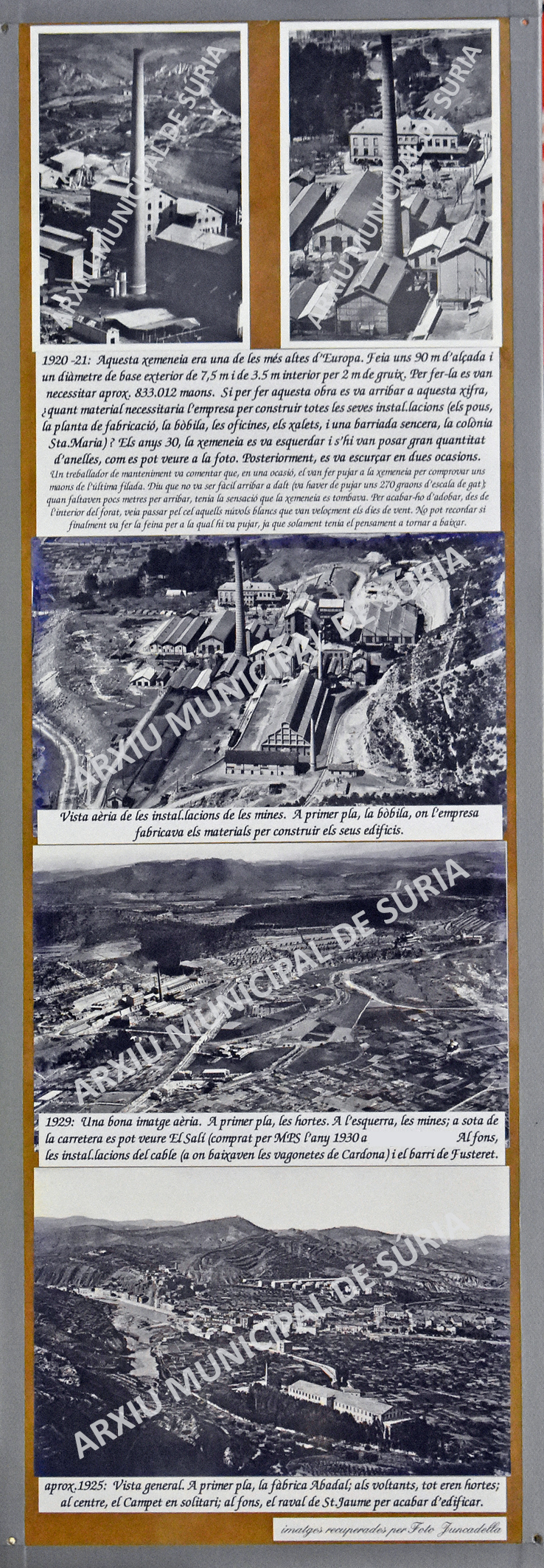 Els plafons de Fotografia Juncadella formen part del fons Fotografia Juncadella de l’Arxiu Municipal de Súria. En total, són més de 260 plafons amb centenars de fotografies històriques de Súria des de finals de segle XIX fins a començaments del segle XXI, acompanyades d’amplis peus de foto explicatius sobre els temes i els personatges retratats.