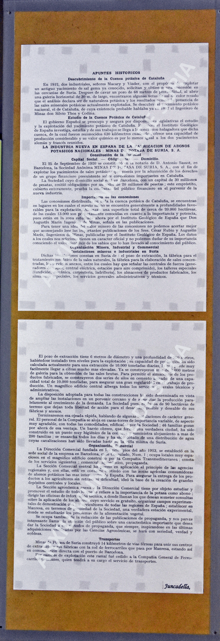 Es tracta, doncs, d’un document imprescindible sobre la vida quotidiana de la vila durant més d’un segle. Al mateix temps, expressen la voluntat del fotògraf surienc Josep Juncadella Masana i la seva família de recuperar i preservar el patrimoni fotogràfic de Súria per tal de posar-lo a l’abast de tothom.