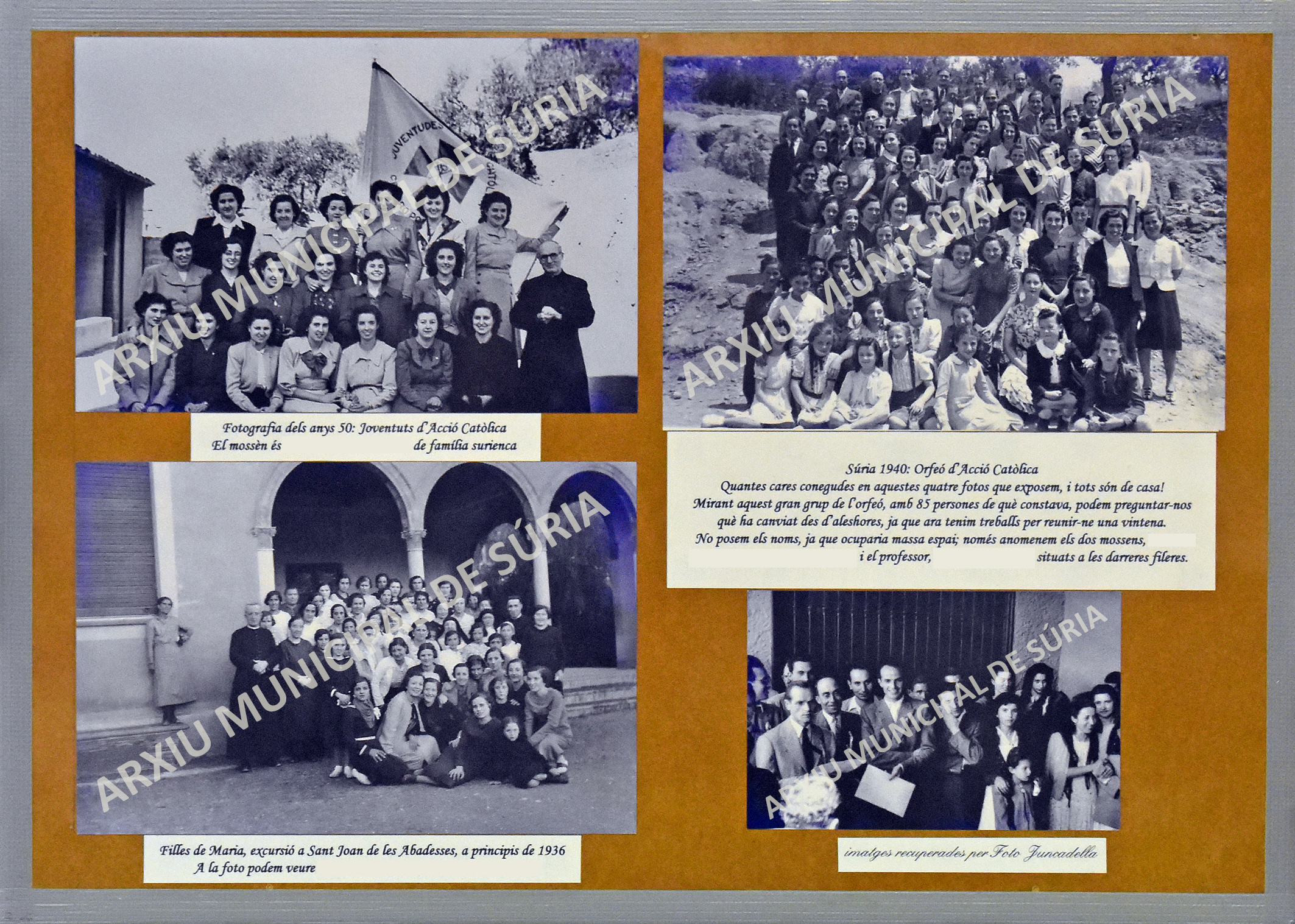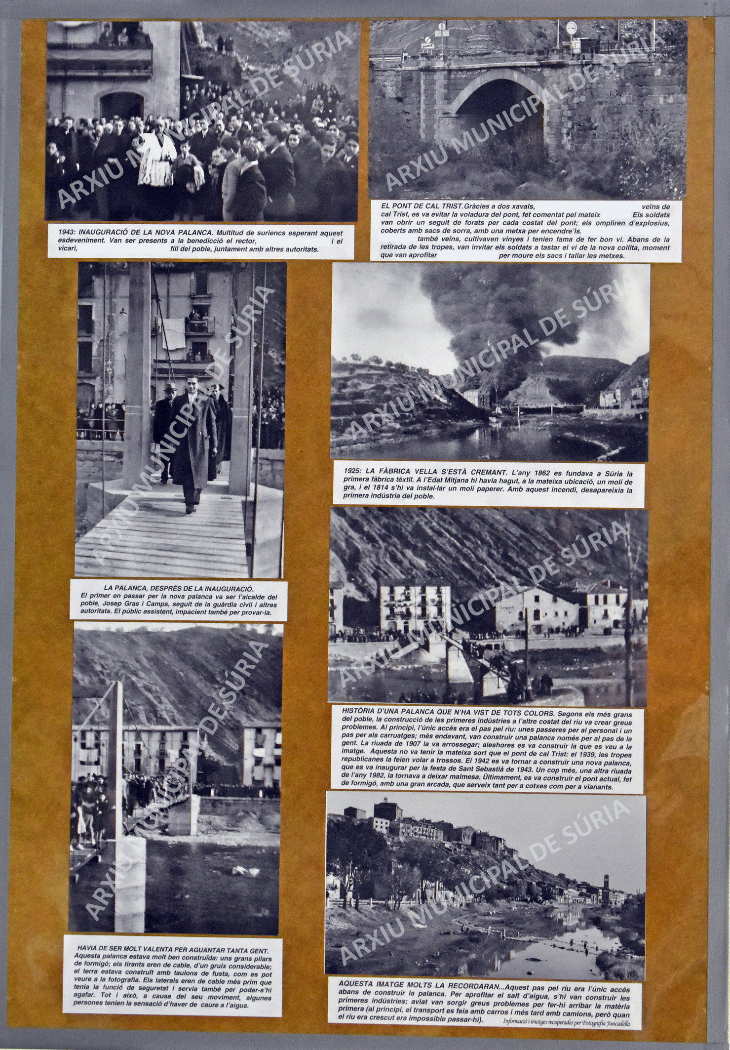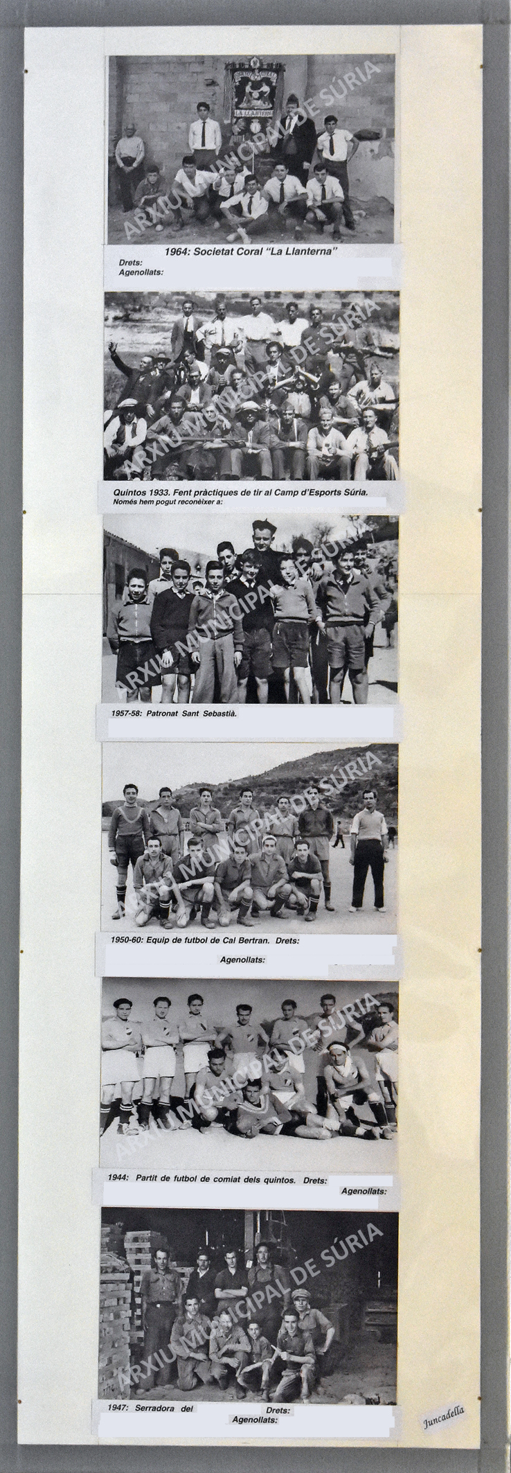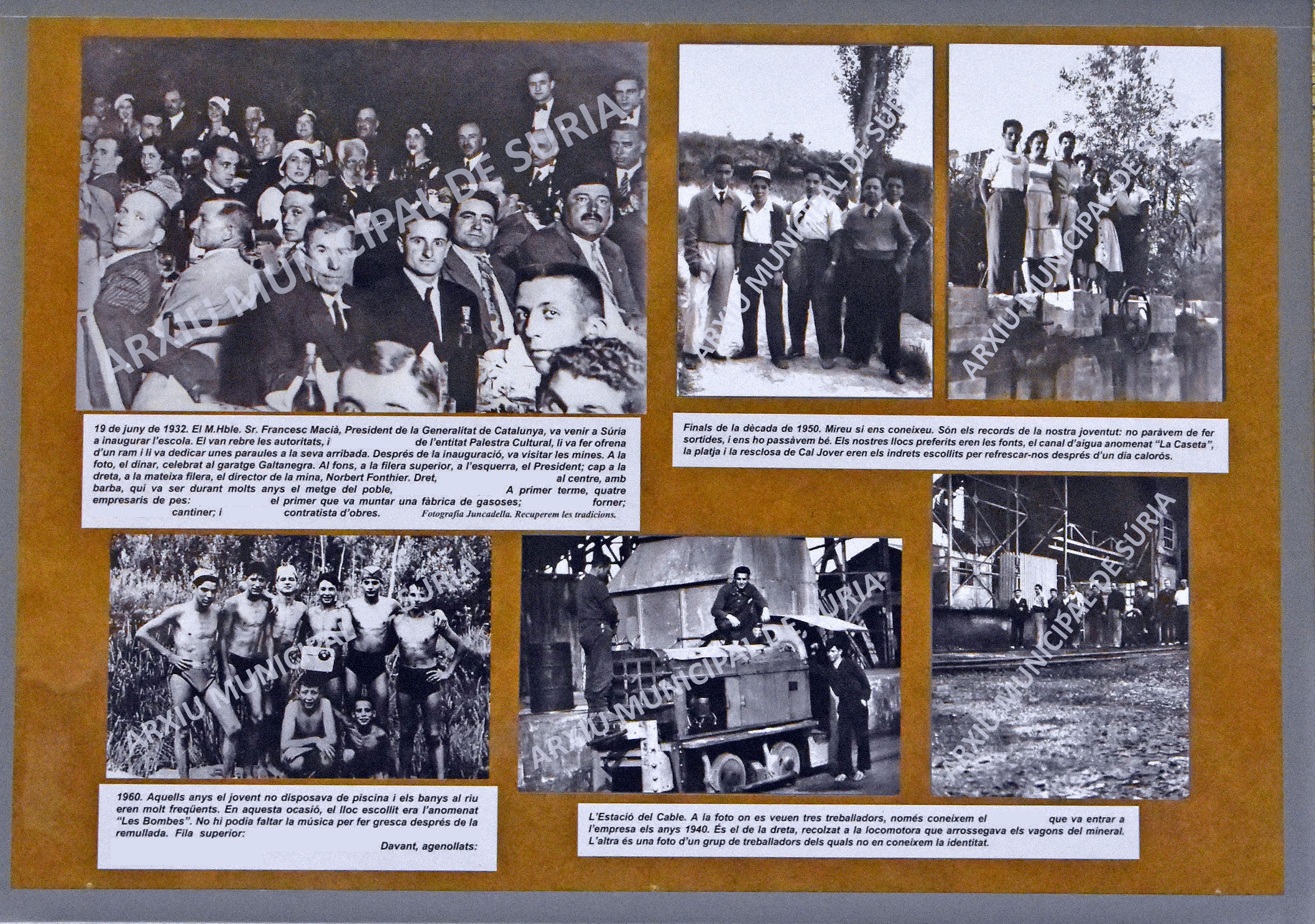 Els plafons de Fotografia Juncadella formen part del fons Fotografia Juncadella de l’Arxiu Municipal de Súria. En total, són més de 260 plafons amb centenars de fotografies històriques de Súria des de finals de segle XIX fins a començaments del segle XXI, acompanyades d’amplis peus de foto explicatius sobre els temes i els personatges retratats.