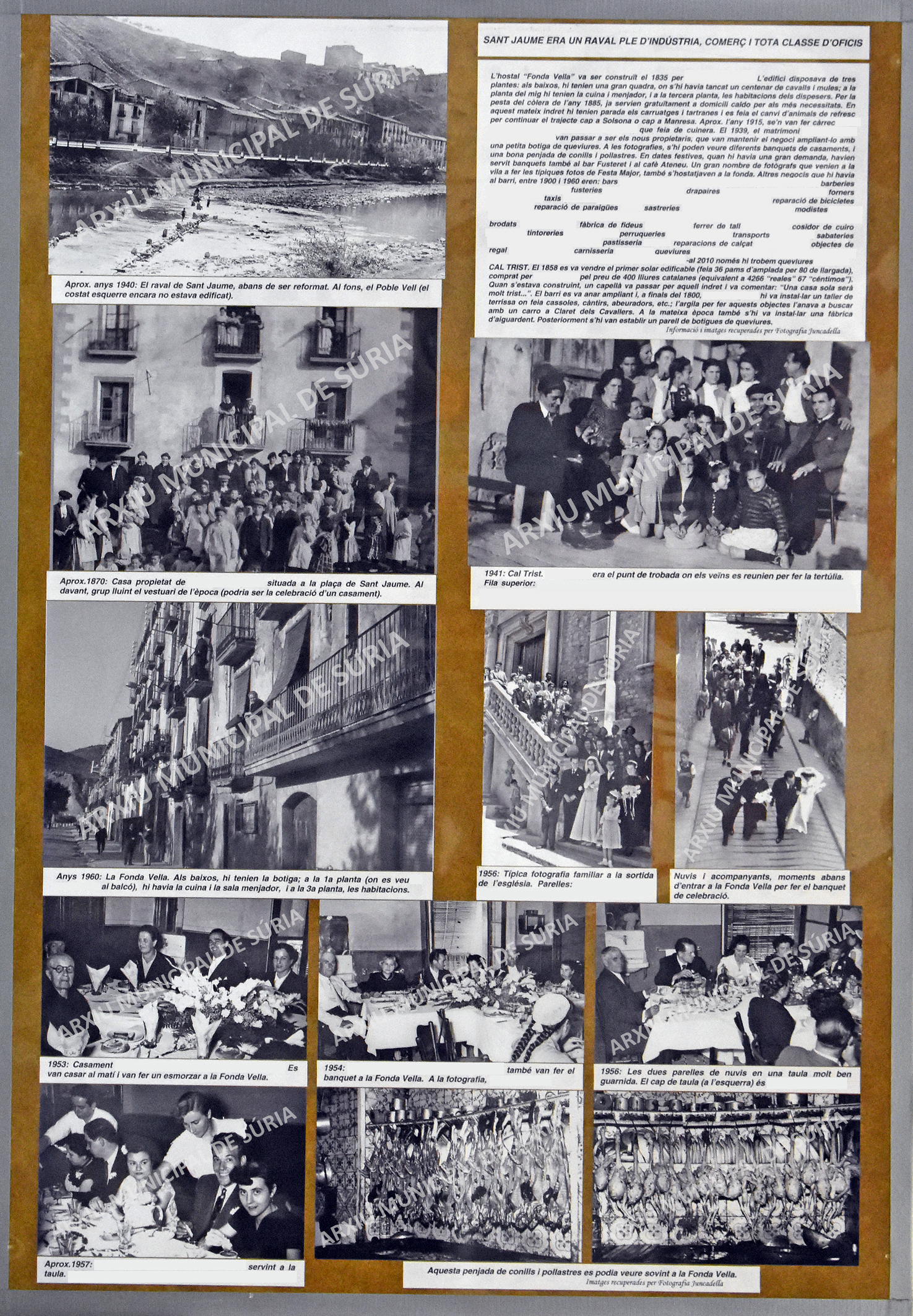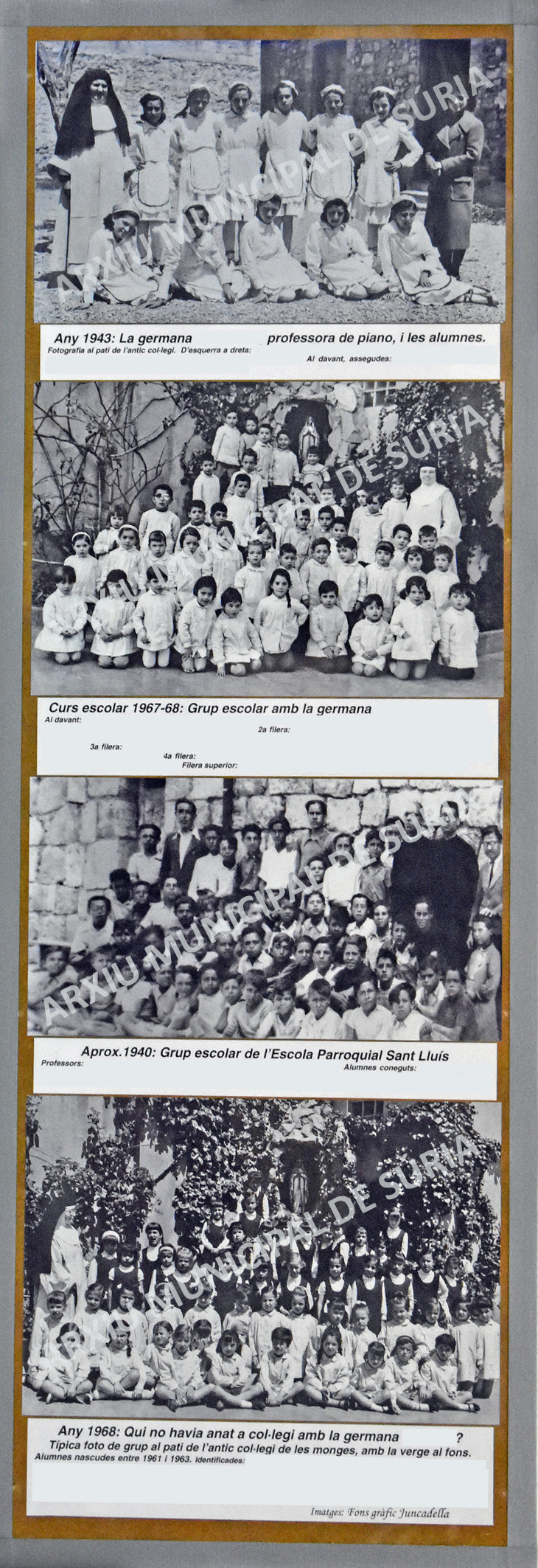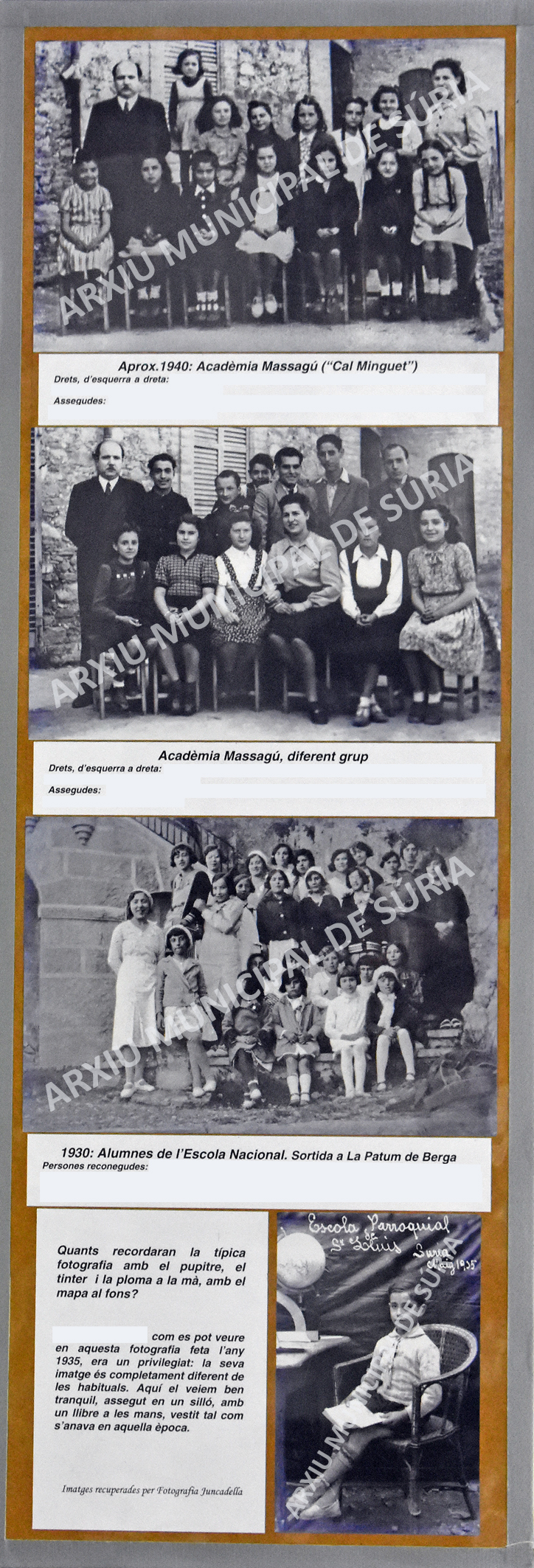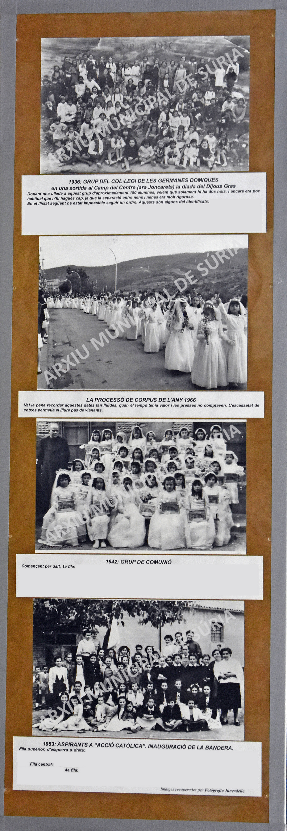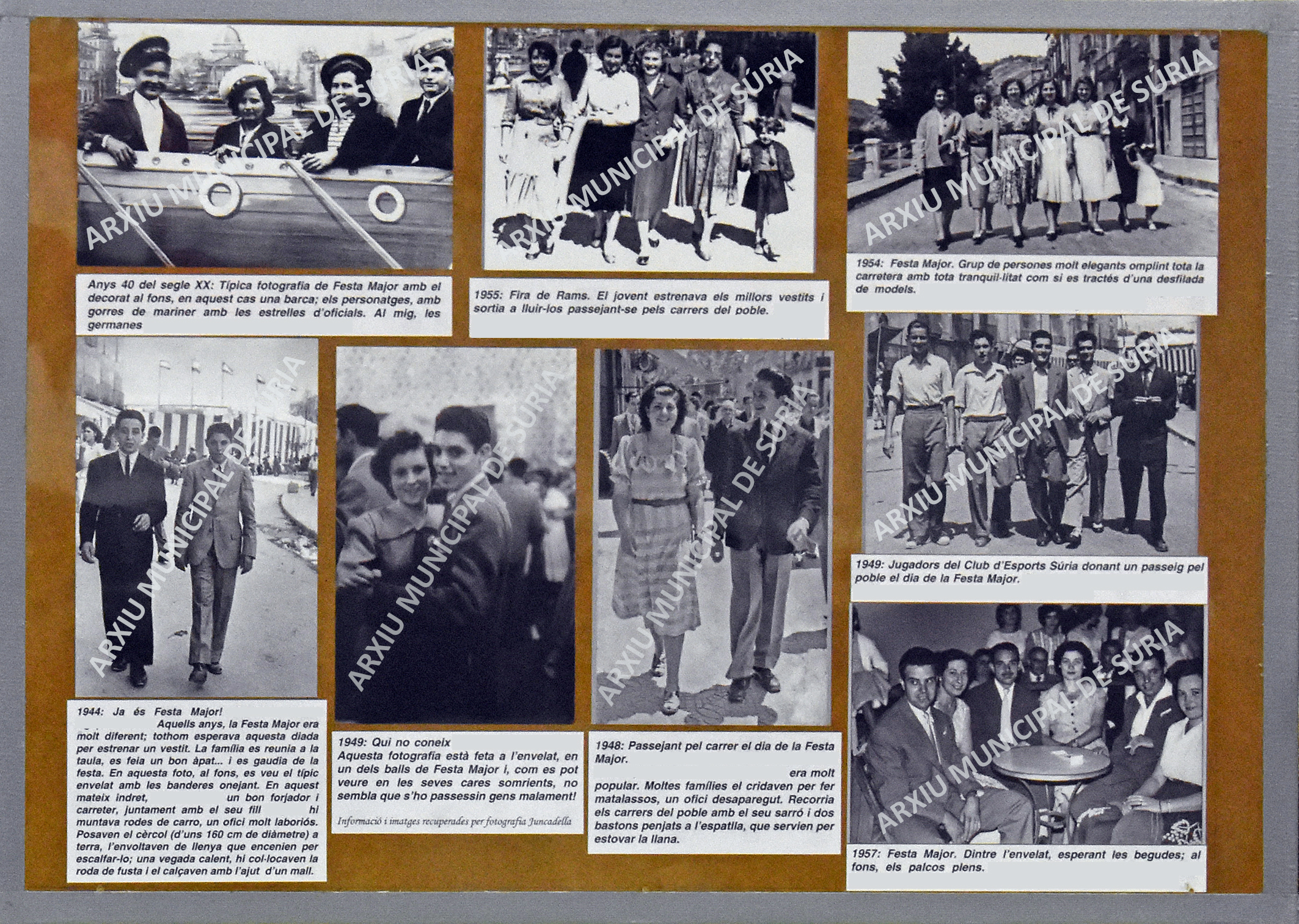 Els plafons de Fotografia Juncadella formen part del fons Fotografia Juncadella de l’Arxiu Municipal de Súria. En total, són més de 260 plafons amb centenars de fotografies històriques de Súria des de finals de segle XIX fins a començaments del segle XXI, acompanyades d’amplis peus de foto explicatius sobre els temes i els personatges retratats.
