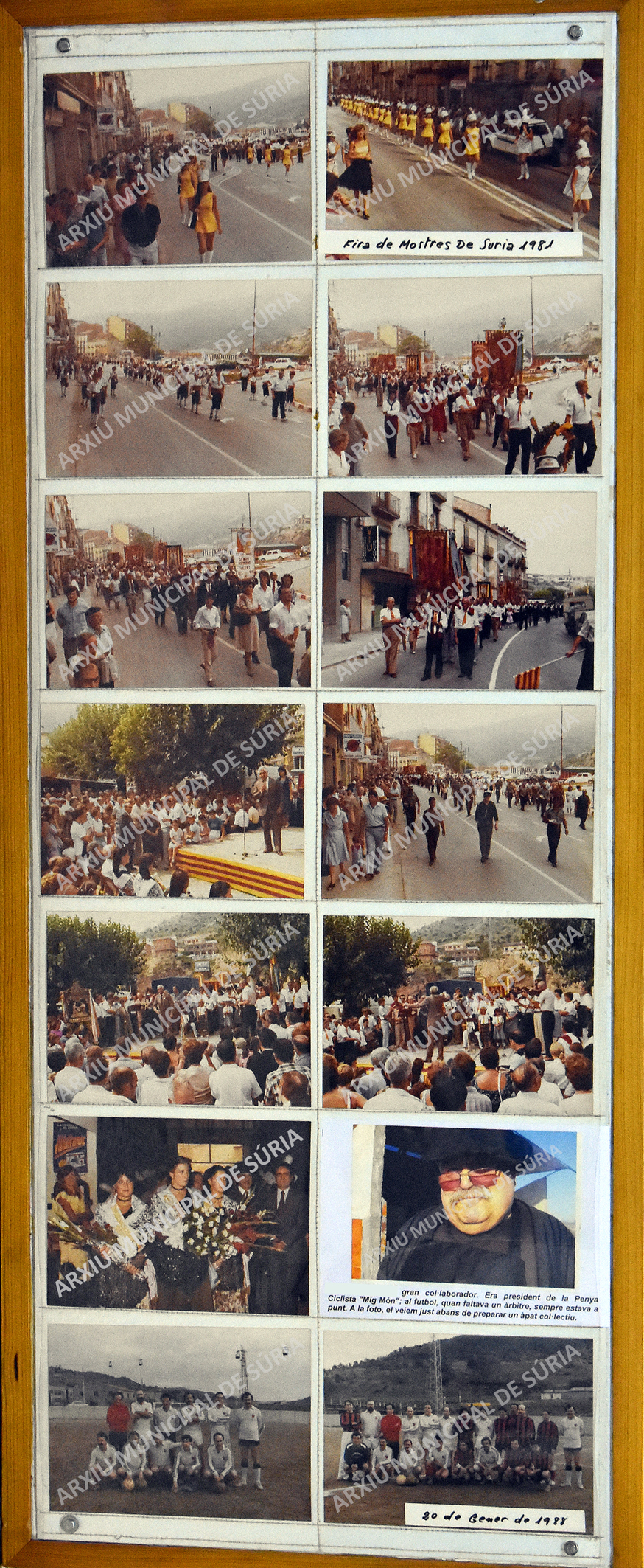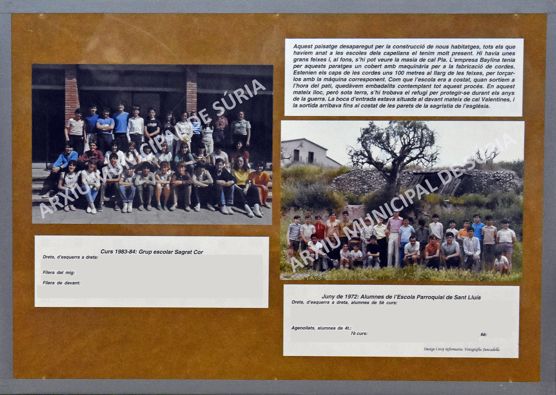 Els plafons de Fotografia Juncadella formen part del fons Fotografia Juncadella de l’Arxiu Municipal de Súria. En total, són més de 260 plafons amb centenars de fotografies històriques de Súria des de finals de segle XIX fins a començaments del segle XXI, acompanyades d’amplis peus de foto explicatius sobre els temes i els personatges retratats.