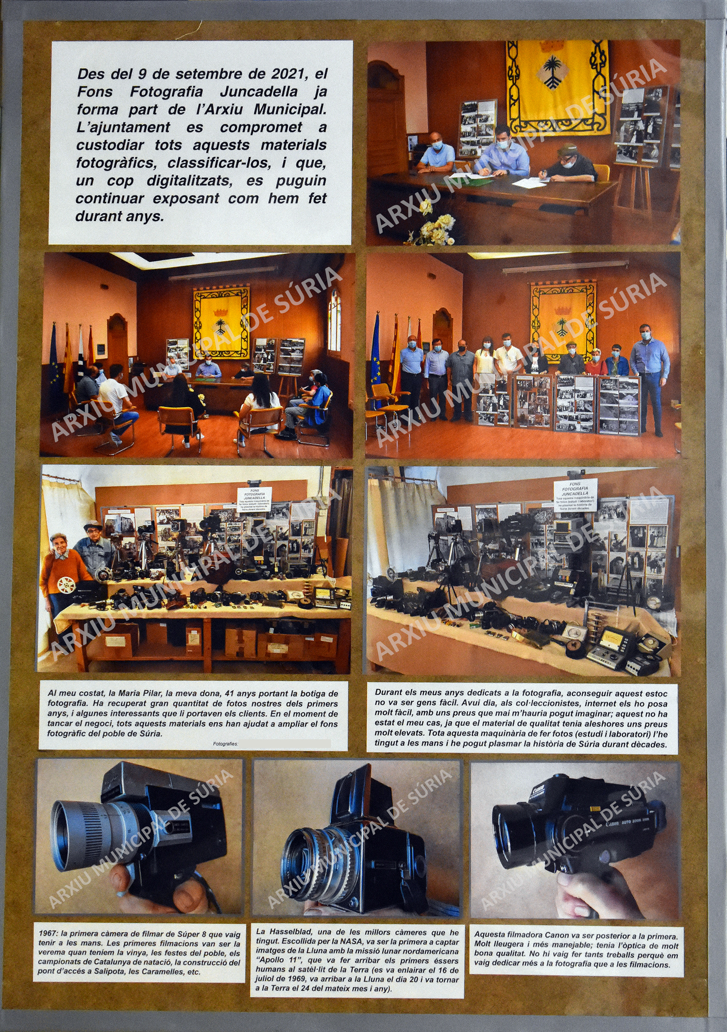 Els plafons de Fotografia Juncadella formen part del fons Fotografia Juncadella de l’Arxiu Municipal de Súria. En total, són més de 260 plafons amb centenars de fotografies històriques de Súria des de finals de segle XIX fins a començaments del segle XXI, acompanyades d’amplis peus de foto explicatius sobre els temes i els personatges retratats.