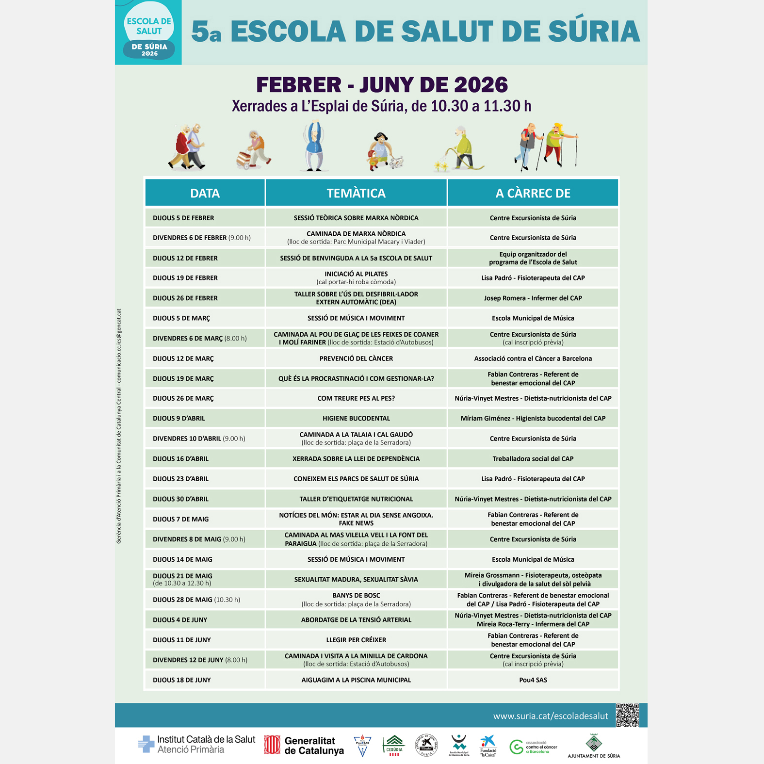 Dates de la 5a Escola de Salut de Súria: del 5 de febrer al 18 de juny de 2026.