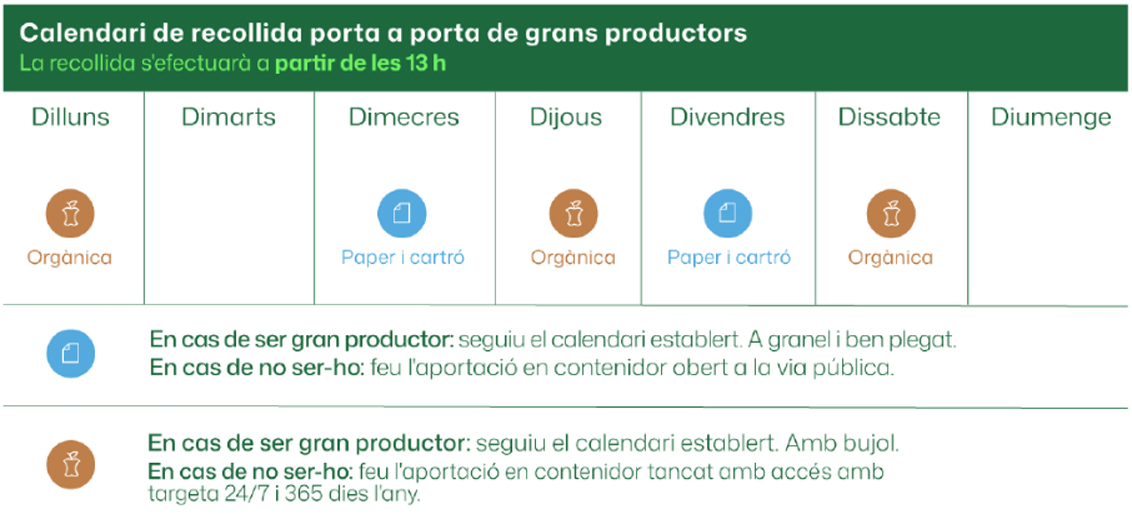 Només es recolliran els residus degudament separats i preparats segons les indicacions anteriors, en els dies assignats per a cada fracció.